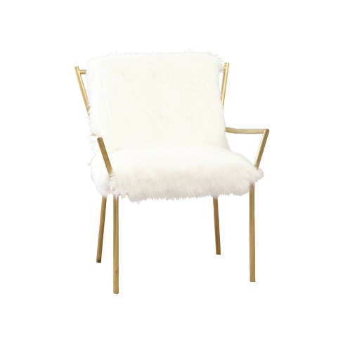 white faux fur chair
